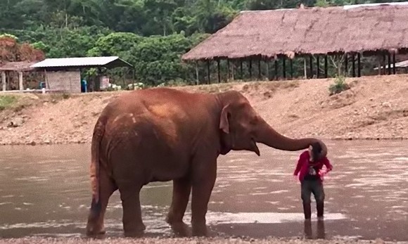 水は危険なのやから気をつけなあかんて!大好きな人間に対して超過保護になるゾウ(タイ)