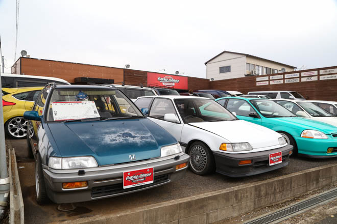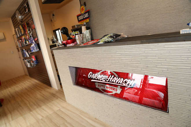 そんな中、「ガレージハヤシ・オートワークス」は、敷地自体は大きくないものの、まるでアメリカのロードサイドにあるような、おしゃれでポップな店構えが特徴。店頭には、左ハンドルのEG型シビッククーペなど、USDM好きにはたまらない希少車が並ぶ。