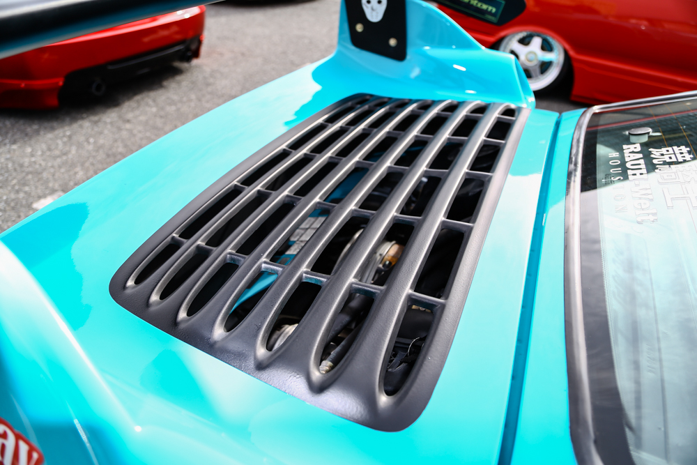ノーマル以上に張り出したオーバーフェンダーは、ボルトオンされている上にコーキング剤を丁寧に注入されて空気の整流効果を確実なものにしている。