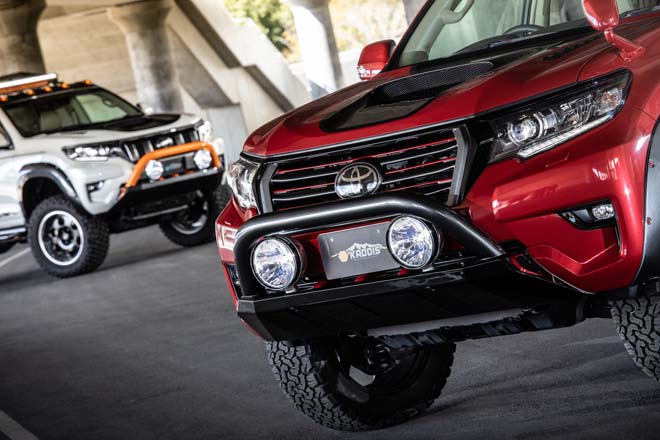 そんなプラドのカスタマイズといえば、やはり四駆らしい迫力のあるフォルムがベスト。そこで注目したいのが、ロードハウスが作り上げた2つのパッケージ。2019年の東京オートサロンで優秀SUV賞を獲得した白の「エクストリーム」は、プラド本来の特性を生かしたオフロードスペシャル。4インチのボディアップマウントとコイルによる2インチのリフトアップは、ガレ場もマッドもターマックもこなすオールラウンダーとしての性格を強調。まさにオフロードのために磨かれたフォルムだ。対して、エクストリームのスタイリングをさらに洗練し、よりライトな層にも4×4を楽しんでもらうために作られたのがレッドマイカメタリックの「AR4(ALL-ROUND 4WD)」。こちらは実用性を重視した2インチのリフトアップに、専用のオーバーフェンダーなどのカスタムパーツで仕上げたモデル。乗降性を損なうことがないため、普段の街乗りからオフロードまでこなせるオールラウンダーとしてのキャラクターが与えられている。