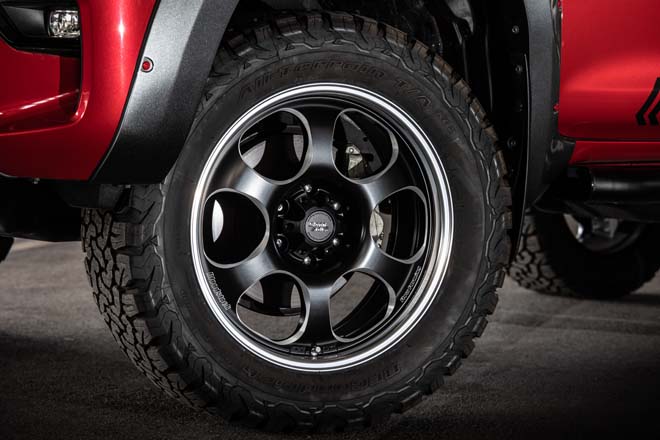 街乗りでのファッション性を重視した足元は、コイルによる2インチアップに加え、ブラッドストックSLの20インチをセット。