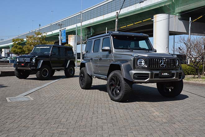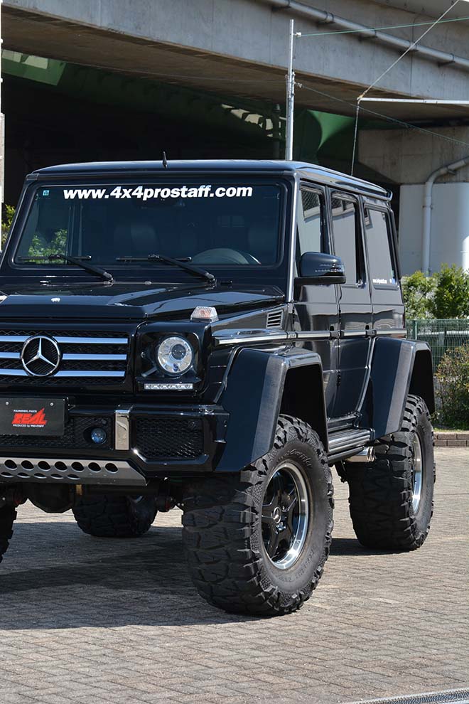 四駆のリフトアップにこだわり続けるプロスタッフがモンスター級のG63AMGが披露したのは2020年の東京オートサロンだった。リフト量にして7インチアップを誇る孤高の存在感と、片側230mmのフェンダーによって超ワイド化された造形美は、日本国内のみならず、海外のメディアからも熱い視線が注がれた。