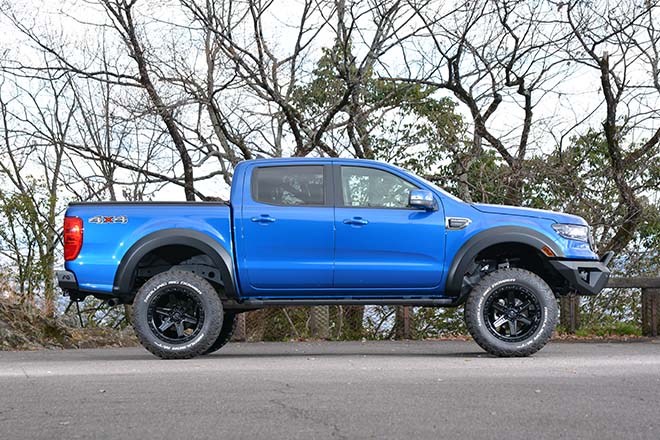 奇しくも今回取材するレンジャーもエクスペディションと同じフォードであり、ハイラックスや本国で人気のコロラドに真っ向勝負するカタチでのリリースとなった。特筆すべきはミドルサイズらしからぬインパクトである。ラフカントリーの6インチアップに加え、フルサイズでもひと筋縄ではいかない35サイズのタイヤをブッシュワーカーのオーバーフェンダーでスマートに履きこなし、本格オフローダー御用達のFABフォースバンパーで完全武装。北米では設定のないラプターフェイス移植に相応しいオフロードスペックを与えており、リアリティに溢れたカスタムは実に説得力がある。むしろこのままアメリカ本国でのリリースを熱望したい!