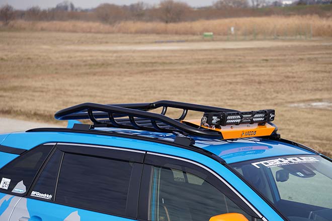 RAV4を季節問わず遊びに使い倒せるタフなギアとしてコーディネイトしたのがロードハウスだ。