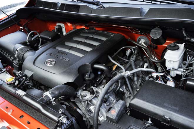 5.7ℓV8エンジンは381hp@5600rpmの最高出力と401lbft@3600rpmの最大トルクを発揮する。TRDプロはスポーティなグレードで、タイヤは275/65R 18オールテレーンをセット。