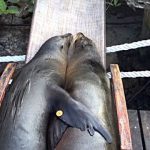 アシカたちのお休み処が営業中?はしけの上でまったりくつろぐガラパゴスアシカたち(音量注意)