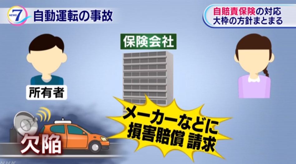 それによりますと、ドライバーが操作をしていない自動運転中の事故でも、普通の車と同じように保険金を支払うとしています。ただ、事故の原因が車や交通インフラのシステムの欠陥にあった場合は、保険会社が、車や部品のメーカーや通信会社などに損害賠償を請求できるようにします。