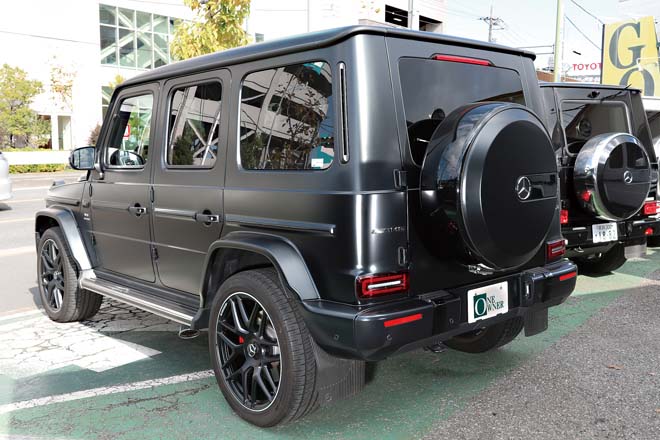 販売車両の最大の特長は、新車からW460などの古いモデルまで、幅広い年式のGクラスを扱っていること。新車の場合は、これまでに高い販売実績を持つため、ディーラーからいち早く仕入れが可能な体制が整っており、エンドユーザーへの早期納車を可能としている。もちろん正規輸入モデルであり、保証などの心配もない。