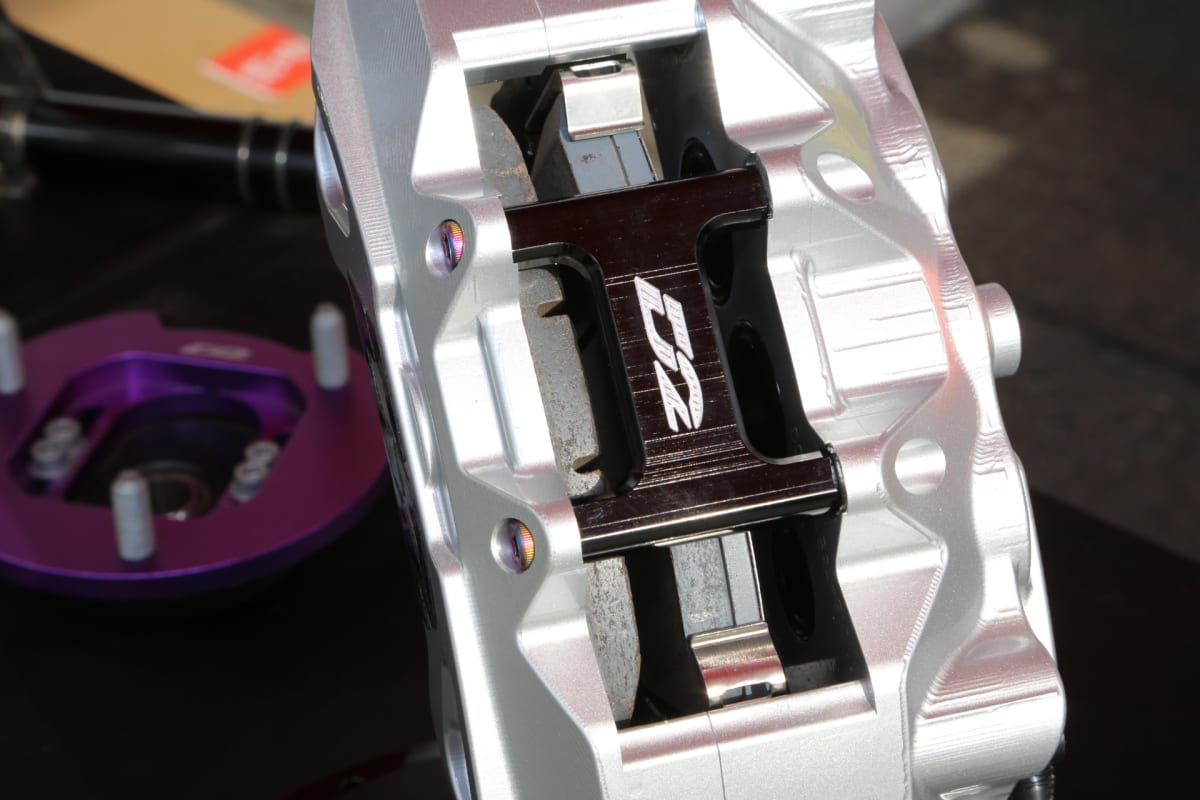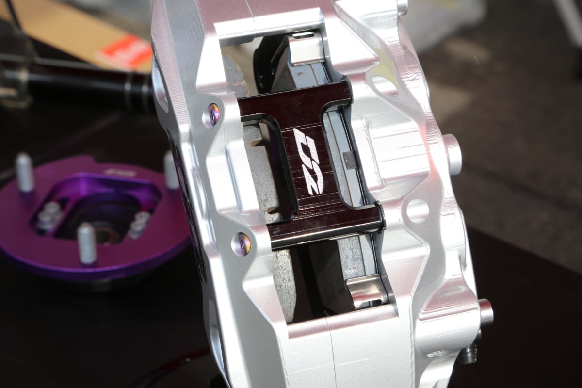中でも注目だったパーツのひとつが、ブレーキやサスペンションのメーカー「D2ジャパン」が展示した「アルミ鍛造スライド式キャリパーキット」。