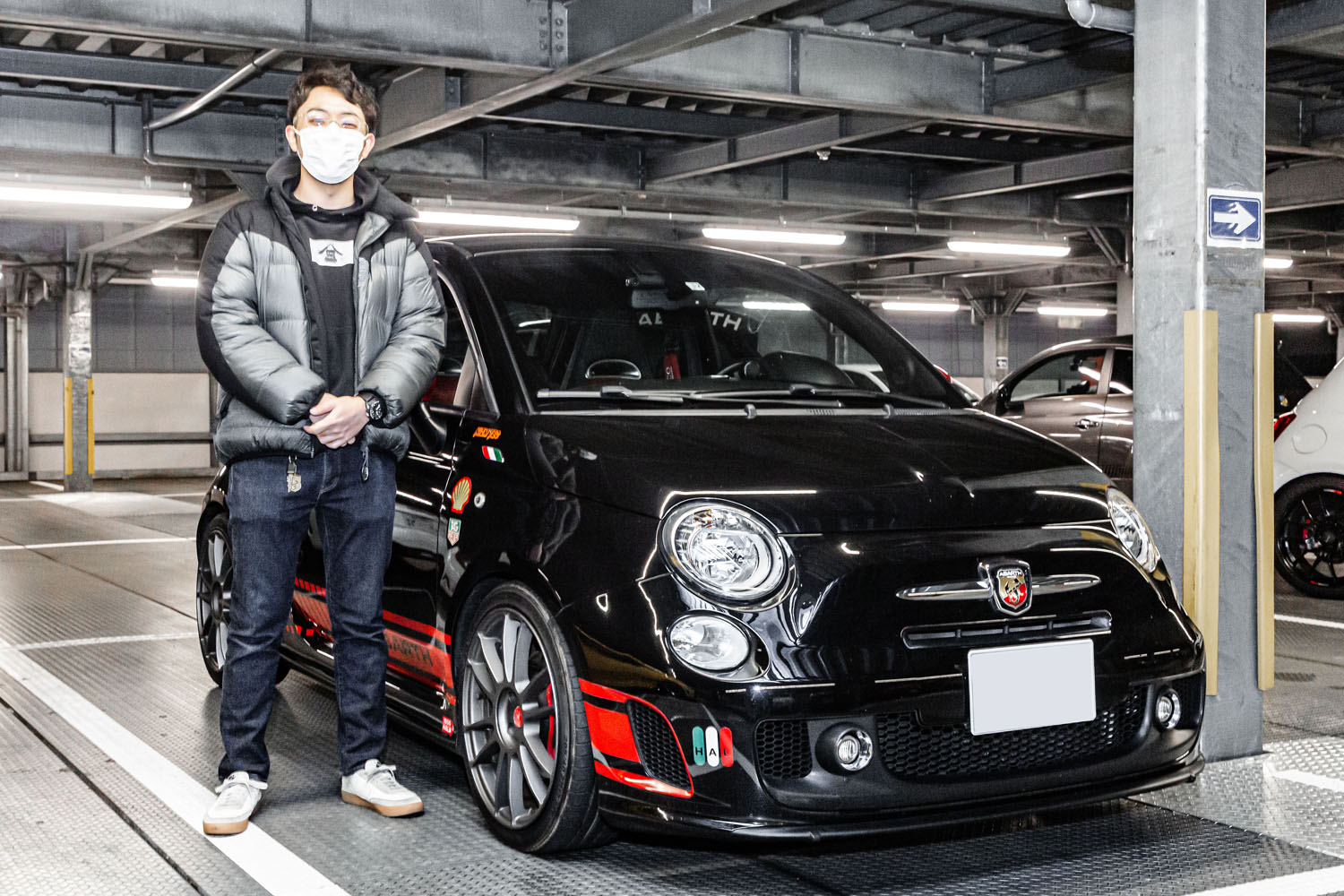 「正直どんなクルマか全然知らなくて、予算もオーバーしていたのですが、アバルトのエンジン音とかターボが効いたときの演出がとっても良くて惚れました。あとリアウイングが付いていて、自分がやりたいことがやってあるクルマだったんです。それとMTにどうしても乗りたかったので、決めてしまいました」