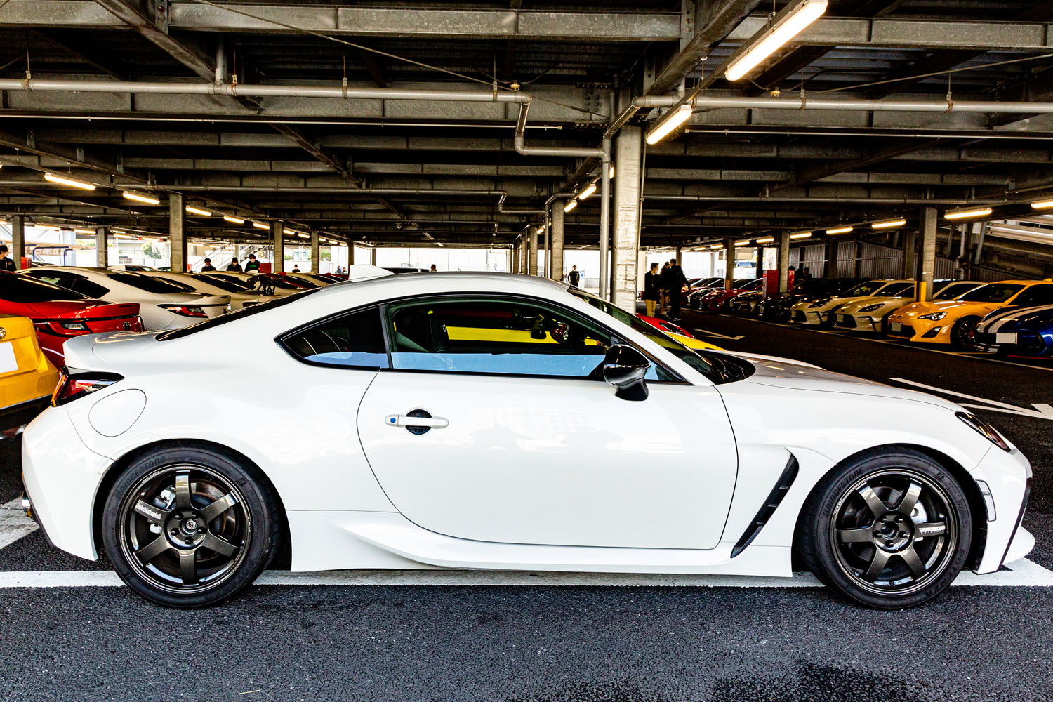 「今は子どもが乗るときもあるので、ロールバーとかは入れないですけど、それ以外はできる限り全部やっちゃおうかなとも思っています。イジる前提で購入したので、グレードも落として一番下にしています。シートもどうせ変えちゃうし、みたいな感じです。今履いているホイールは購入した時から入っている9.5Jですが、同じTE37の9Jの17インチを今注文しているところです。次は吸気系に、熱対策を含めてボックスタイプのエアクリーナーを考え中です。その後はECUなんかもやろうかな、とも思っています。そうしたらサーキットも行こうかな」