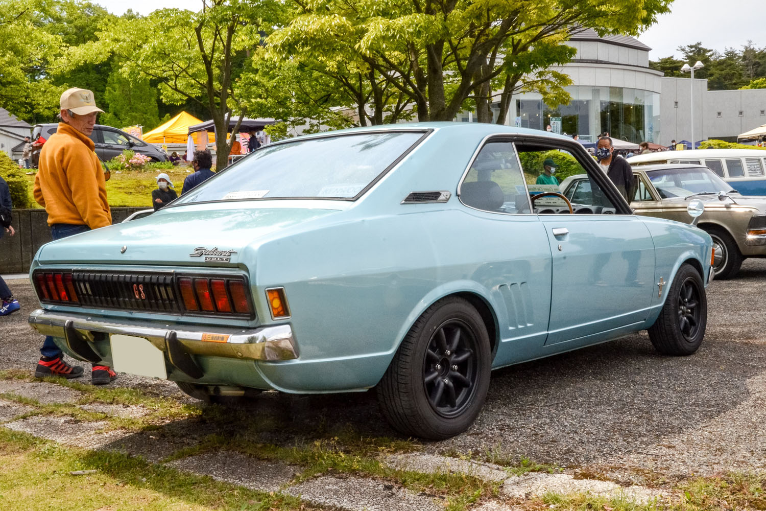 展示車両は1960~70年代生まれの車両がメインで、360cc時代の国産軽自動車から7L V8の「コブラ」まで、他のイベントではなかなか見る機会も少ないバラエティにとんだ車種が揃う。たとえば三菱車。国産ヒストリックカーのイベントでも比較的少数派といえる三菱車だが、当日の会場には「ミニカF4」、「コルトギャランAII」、「ギャランGTO MR」と3台の三菱製のクルマが展示されていた。今回はそれらの中から、コルトギャランAIIのオーナーに直接お話を伺うことができた。