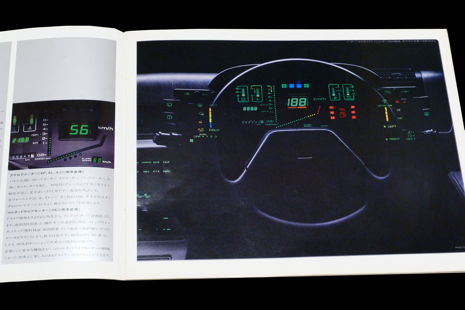 しかし内心構えていたものの、実際の使い勝手は、意外にもすんなりと馴染めた。ステアリングホイール左右のサテライトスイッチは原案をほぼ忠実に再現したもので、右手側のウインカーは薄い形状のレバーを2本の指先で挟んで上下させればよく(もちろんリターン機構も備わっていた)、左側の空調スイッチは、温度の上下がスライドスイッチ、吹き出し口の切り換えはフェザータッチのボタンスイッチ(指先で軽く押し込むとマイクロモーターがクゥン! と短く作動しモードが切り替わった)、さらにその外側には指先で手前に引く前後ウインドウデフォッガーと、配置、操作アクションが理にかなっているため、操作しやすいものとなっていた。