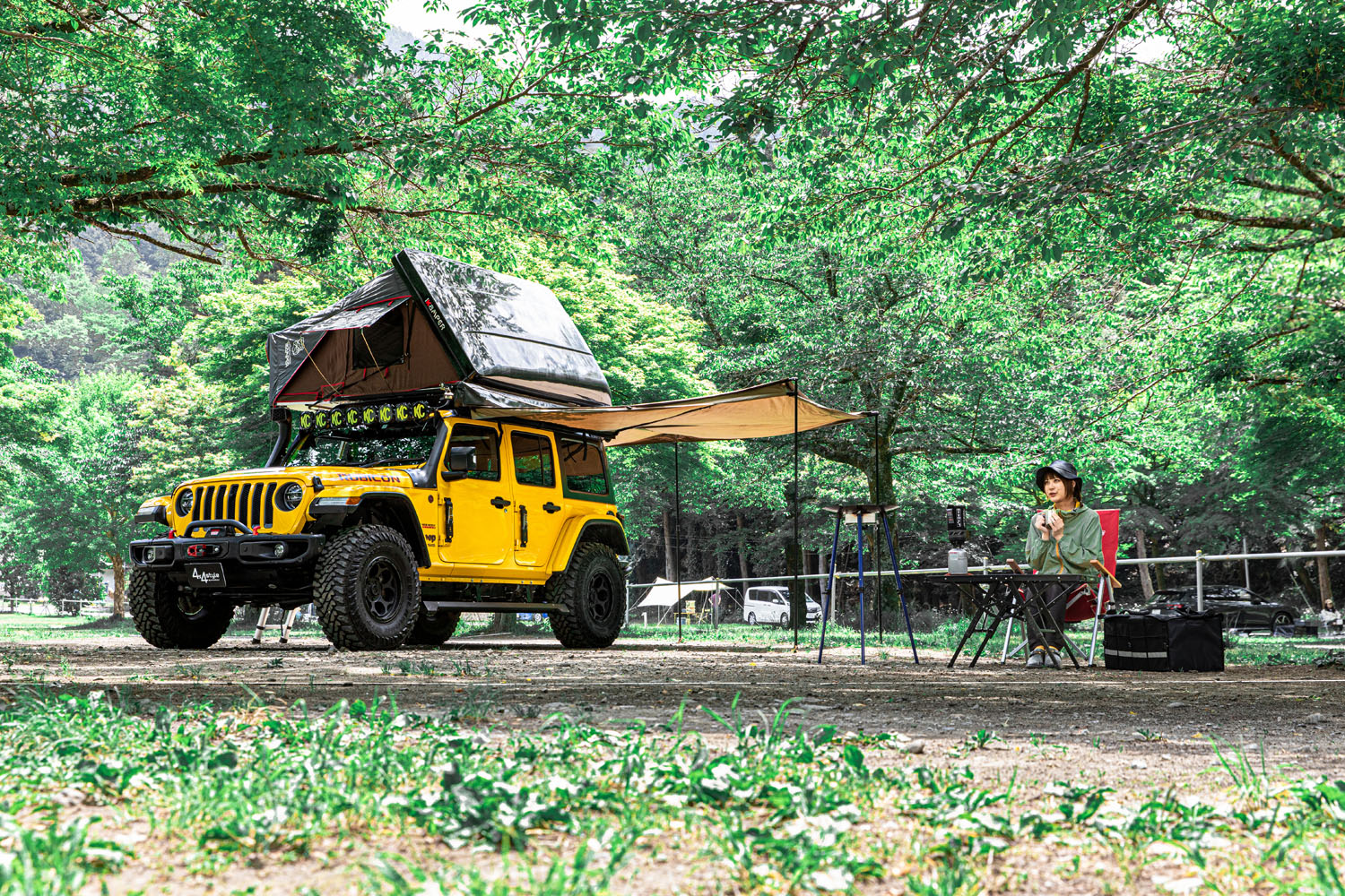 そう聞くと見ているだけで御利益がありそうなラングラーは、購入してから半年でフルカスタム。オーバーランドスタイルに憧れたこともあり、ルーフトップテントやサイドオーニングも装備した。インドア派だった彼女は、この相棒で出かけることが増えた。