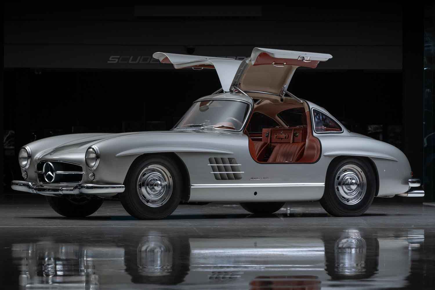 ドイツ人が「Fluegel Tuellen(ウイングドア)」と呼んだ独特のドアは、アメリカ人によって「ガルウイング」と呼ばれて一般化したが、当時のレースでチューブラースペースフレームの剛性確保とドア開口部のレギュレーションを満たすうえでは最もエレガントな解決策と言われていた。