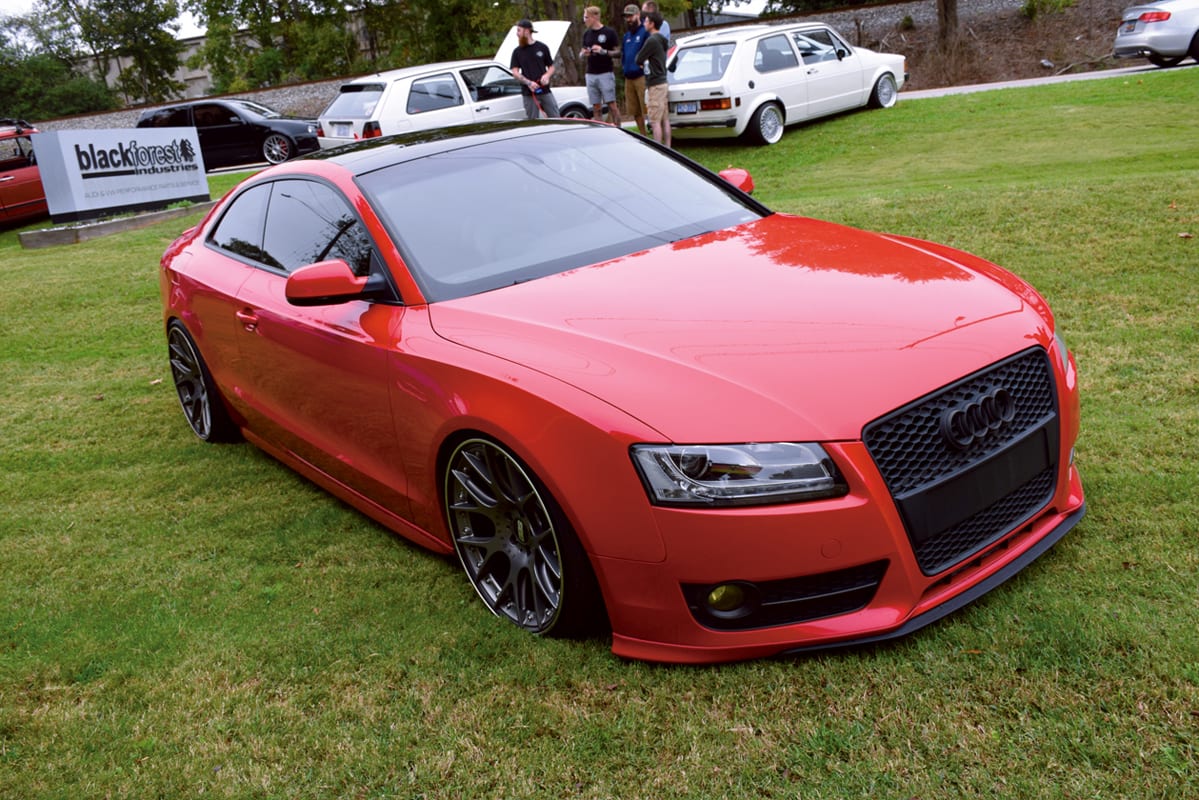 「BFI」のデモカーであるアウディA5。ドシッとローダウンしたところに大径のBBSホイールを投入。RSスタイルのフロントグリルもスポーティだ。