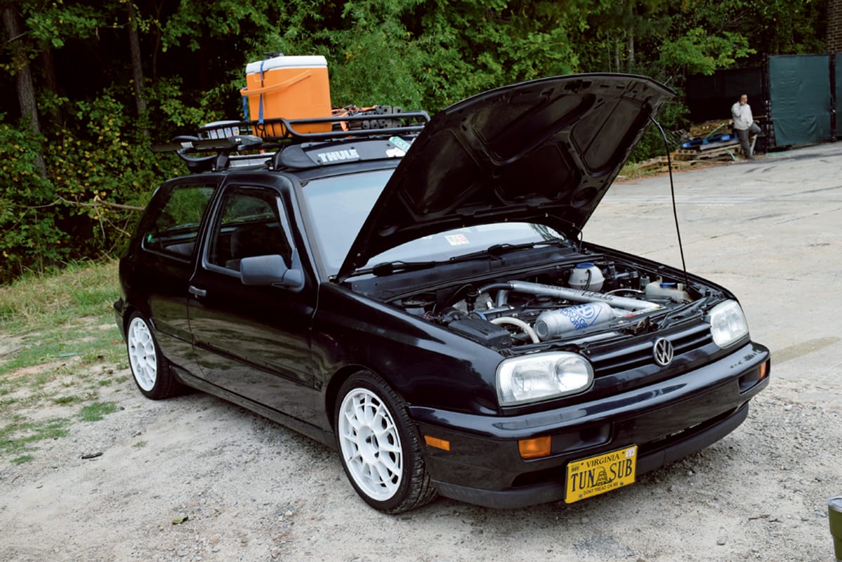 オリジナルの2.0ℓ8バルブエンジンをUSRTでターボ化したというハードコアなVWゴルフ3を発見。まだまだこの世代も元気な証拠です。