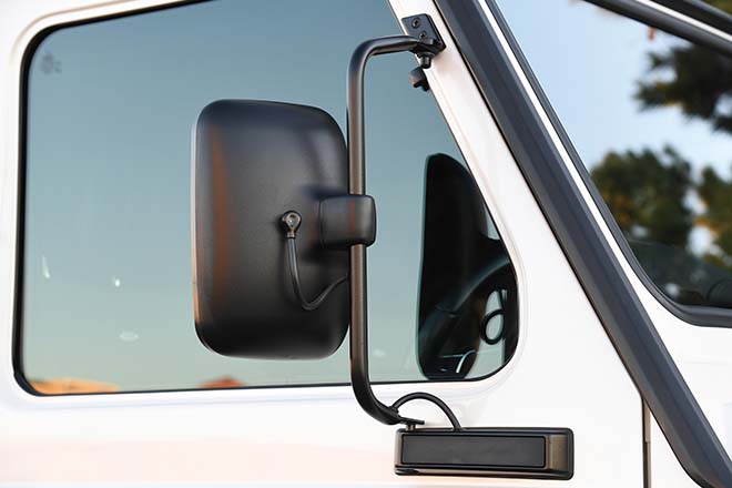W461の電動ドアミラーで視認性を確保し、アクティブブラインドスポットアシスト機能はAピラーに移設。