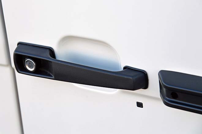 五角形のW461用ライトベゼルとビス留めモールを使っているが、V6エンジンのインテーク穴が両サイドに必要になるため、片側しかないW460用ではなく、フェンダーはW463用を加工して左右に装着している。ライトはバイキセノンタイプのヘッドライトを採用している。