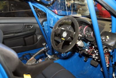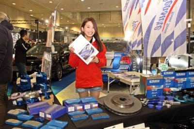 ロールケージまで組み込まれた本気仕様の「WRX STI」と思いきや、なんと先代「インプレッサG4」をベースにEJ20を搭載した悶絶マシンは「プレジャーレーシングサービス」のデモカー。オリジナルパーツの販売からジムカーナ壮行会まで幅広く手掛ける同社では、車高調やエアクリーナーといった定番アイテムから、ローギヤ化されたファイナルギヤや各部のブッシュ類まで降りなるアイテムを取りそろえる。今回のオートメッセではイチオシのコントロール性にこだわったスポーツブレーキパッドを中心に販売中だ!