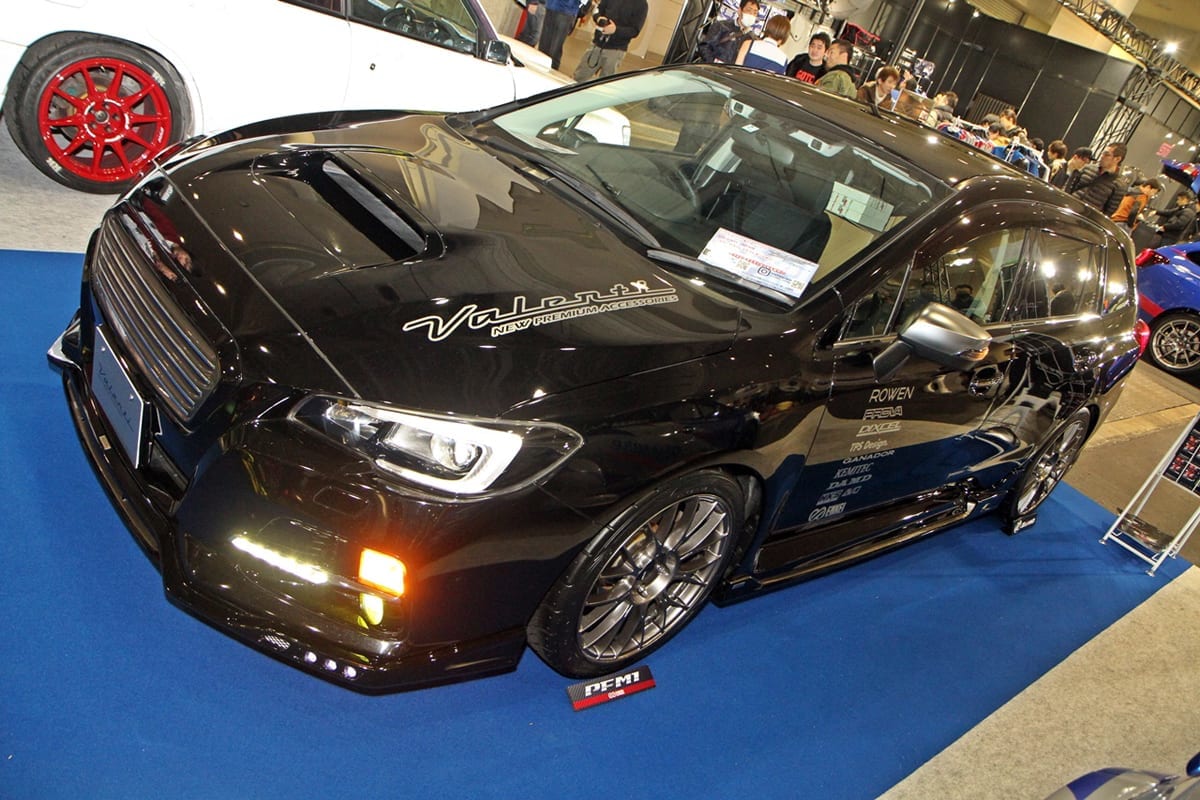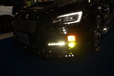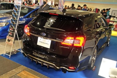 ヒカリモノ系で絶大な人気を誇る「ヴァレンティ」は、現在人気沸騰中のレヴォーグ用LEDテール装着車を出展。純正デザインの良さを生かしつつ、フルLED化。ウインカー部はトレンドのシーケンシャル(流れる)タイプとなっている。純正では点灯しないバックドア側のテールランプもしっかり点灯するなど、細かいこだわり部分もぜひチェックしてほしい。