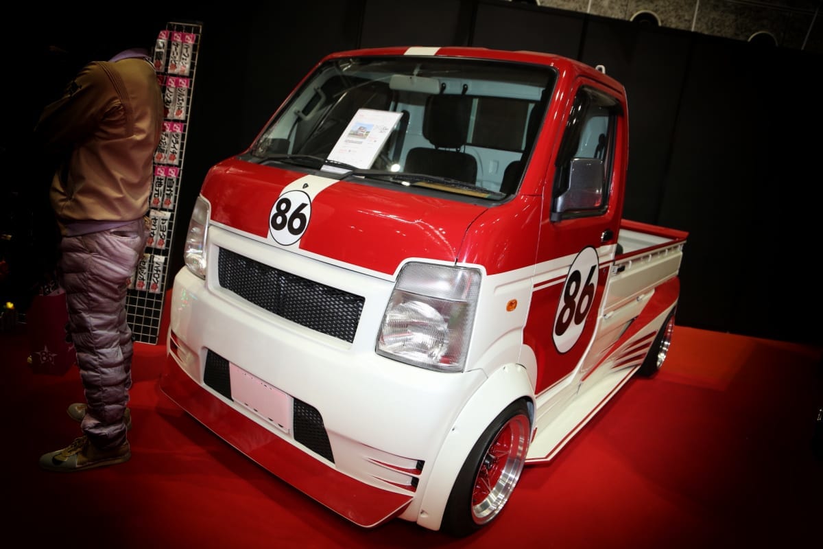 ほかにもブース内には、ホワイト×レッドのカラーリングでレーシーな雰囲気を出した「スズキ・キャリイトラック」もお披露目。