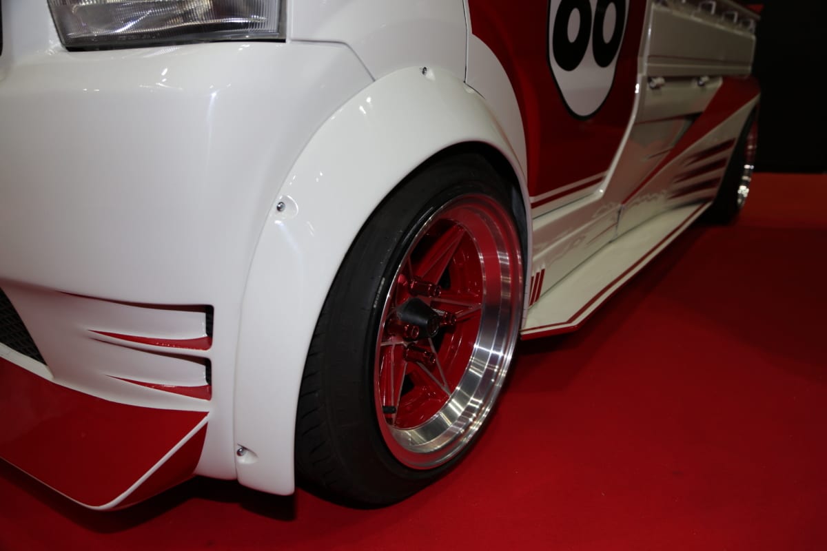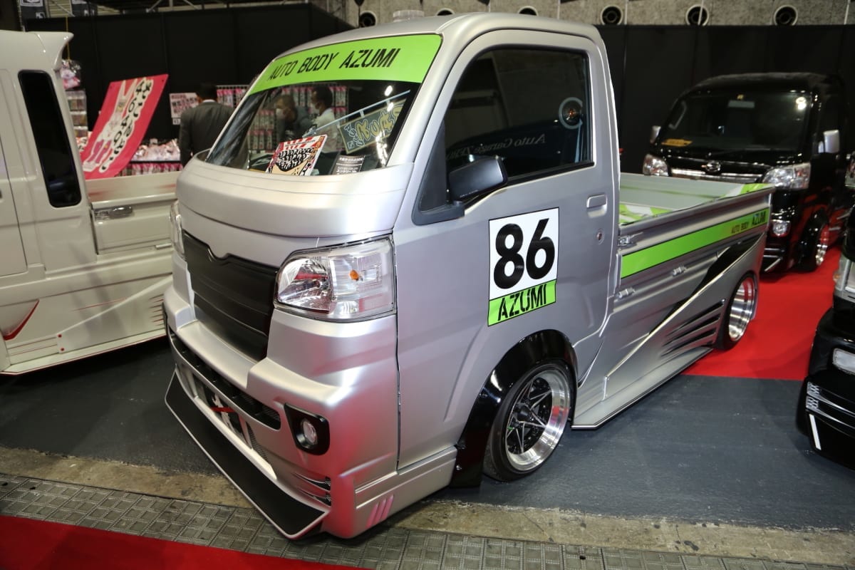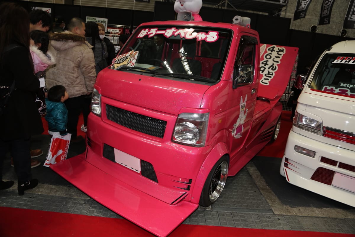ほかにもブース内には、ホワイト×レッドのカラーリングでレーシーな雰囲気を出した「スズキ・キャリイトラック」もお披露目。