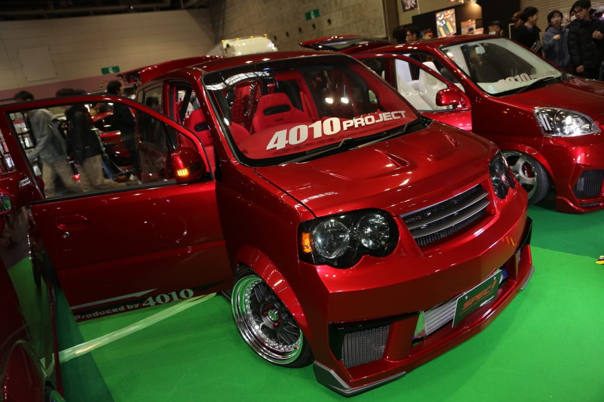 ここでは、それらの中で特にお目立ち度満点だった、愛知のプロショップ「スペック!」ブースに展示された軽カー3台を紹介しよう。