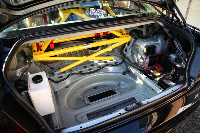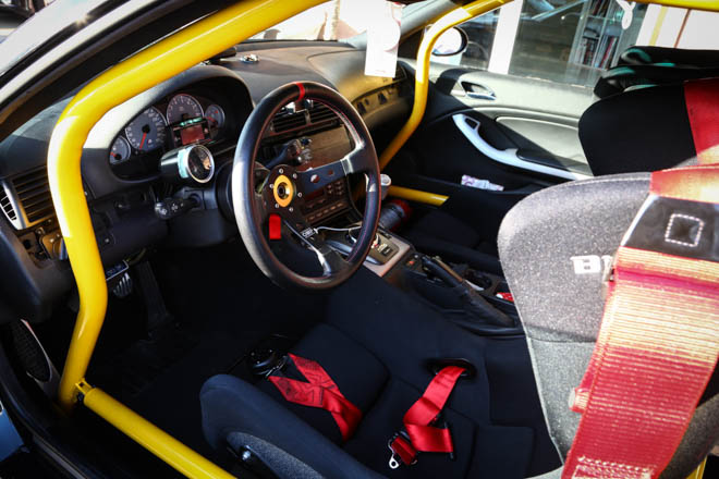車内にはイエローカラーが目を引くロールゲージが張り巡らされ、これがこのまま公道を走れるのかとい心配になる。オーナーであるリーさんのこだわりは、「サーキットで速いのはもちろん、ストリートでも峠でも楽しめる車を作りたい」ということ。