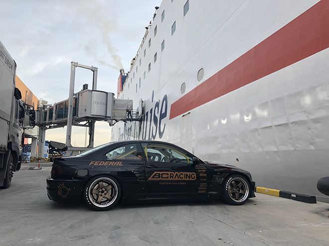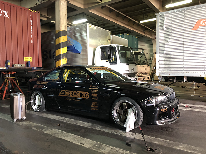 今回の検証企画に協力してくれたM3のオーナーは、韓国人のリーさん。そう、リーさんはスタンスネイション東京2017に出品するため、わざわざフェリーで18時間かけて大阪に入り、その後7~8時間かけて東京まで自走していくことを計画していたそうだ。