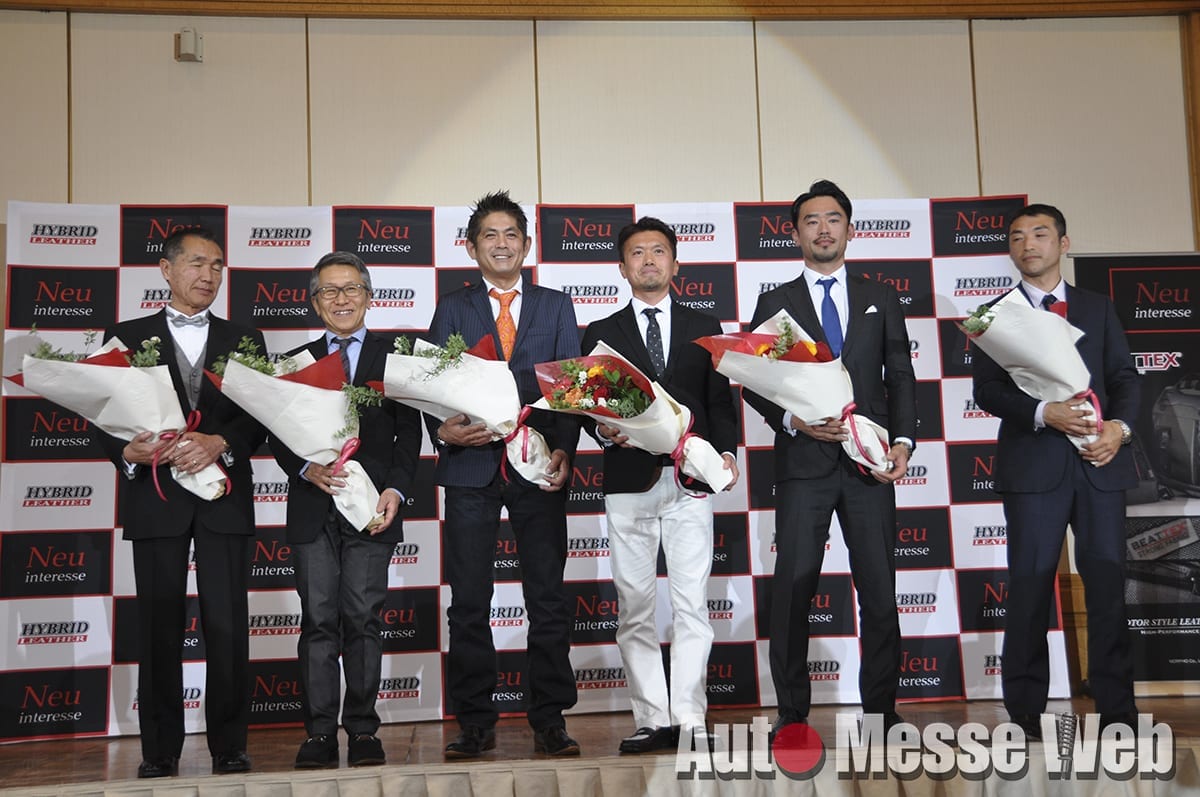 メンズレザーアイテムとモータースポーツを融合させた展開が人気の『ノイインテレッセ』。最近では、織戸学選手や「TOYOTA 86」とのコラボアイテムを発表して好評を博している。そんな『ノイインテレッセ』がサポートしているドライバーたち“チーム・ノイインテレッセ”の2018年の活躍を応援する壮行会が3月7日に都内のホテルで開催された。