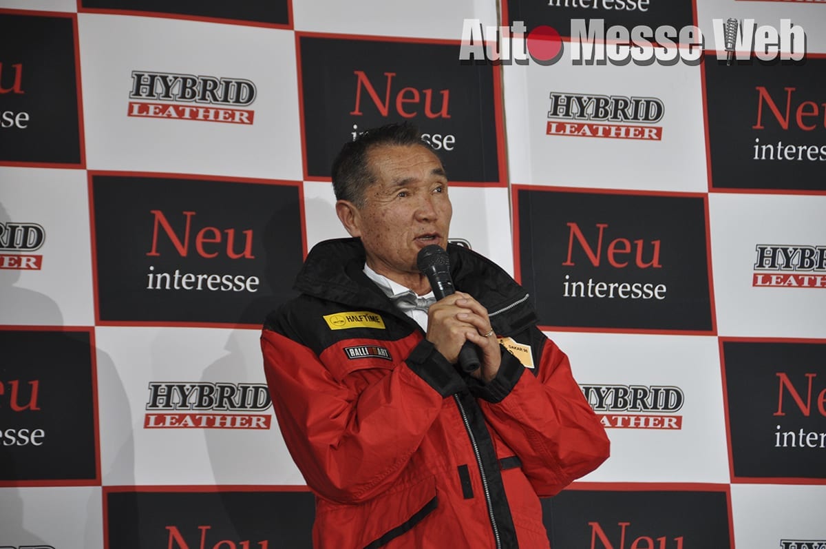 「ノイインテレッセは、モータースポーツと音楽、ファッションを融合させたエンターテインメントブランドです。皆さんに育ててもらうことで、より大きくなれると思います。今シーズンのチーム・ノイインテレッセの飛躍を期待しています」という、ノイインテレッセブランドのモルフォ、小澤廣幸社長の挨拶。
