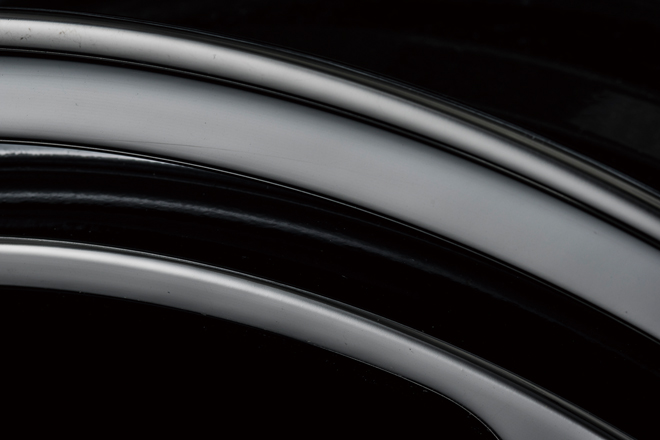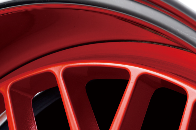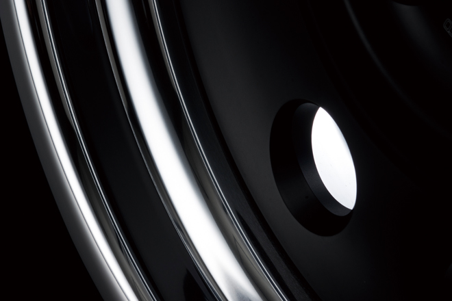 過度な装飾を一切排除した、スポークとディッシュからなる合計4つのデザインを用意しており、オバフェンのみのチョイ上げエアロレスなんていう、ライトなカスタムにもドンピシャ。ドレスアップ系の定番であるピアスボルトもなければ、センターキャップもあえてナシと、デザインはかなり潔く、色は各モデル専用の1色に全品共通のオプションカラーとしてスーパーバフが選べる設定と、判りやすいものとなっている。