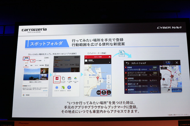 いつか行こうと思って登録しておいたスポットを、ナビゲーションが記憶しておいてくれる。