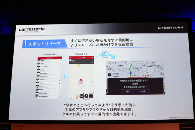 ・事前に送信した目的地を起動時に受信して設定できる[スポットリザーブ]