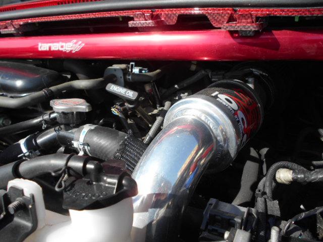 エンジンルームはタナベ製タワーバーがバタつきを抑えている。
