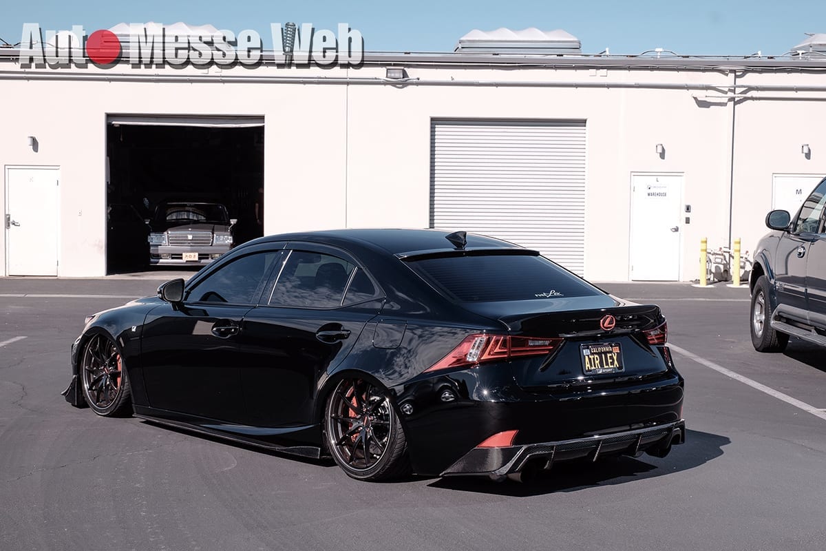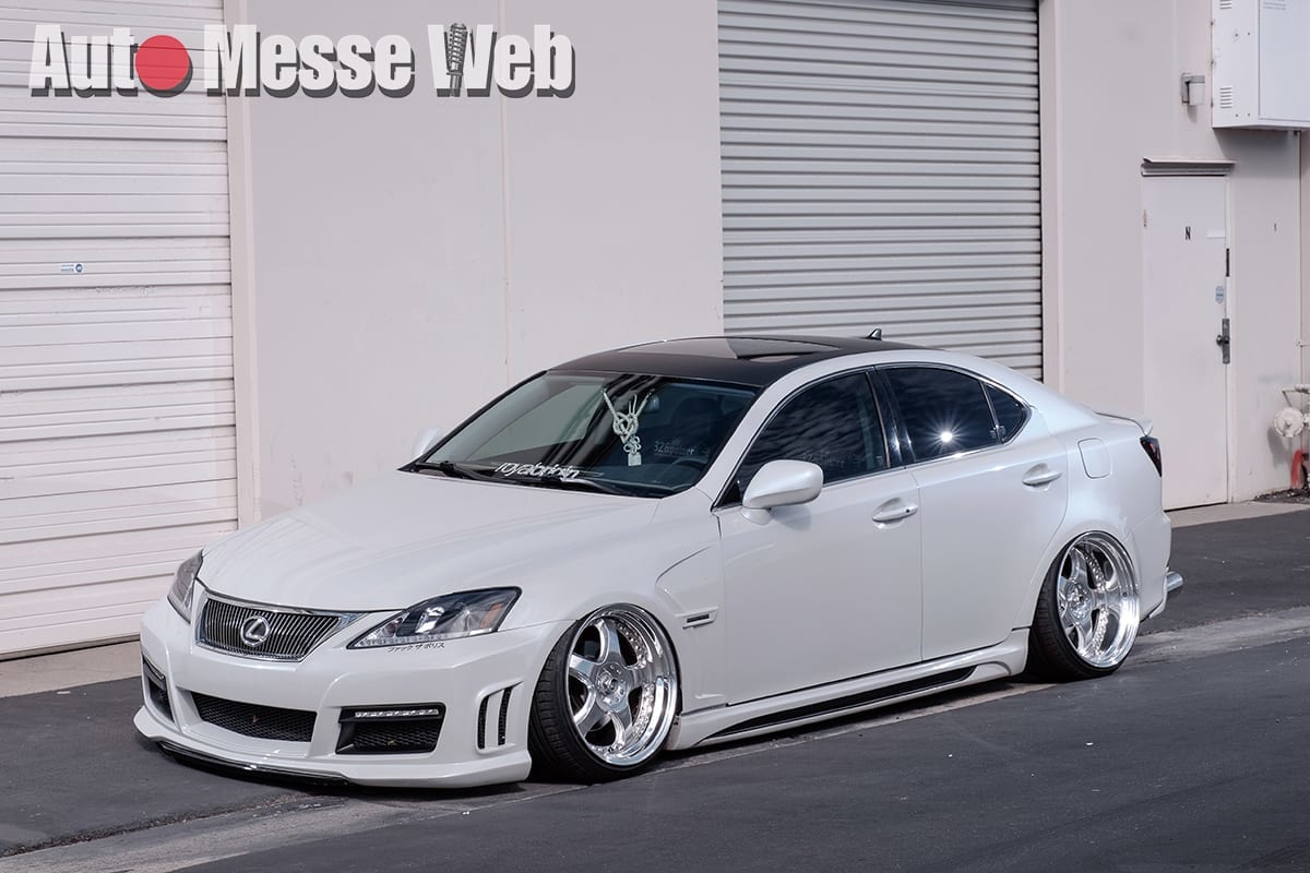 IS250のスポーティな雰囲気を損なわない「エイムゲイン」と、VIPらしさを演出する「ジャンクションプロデュース」をうまく融合。足はエアサスでリムの被り方を見る限り、日本スタイルを熱心に研究したことが伺える。