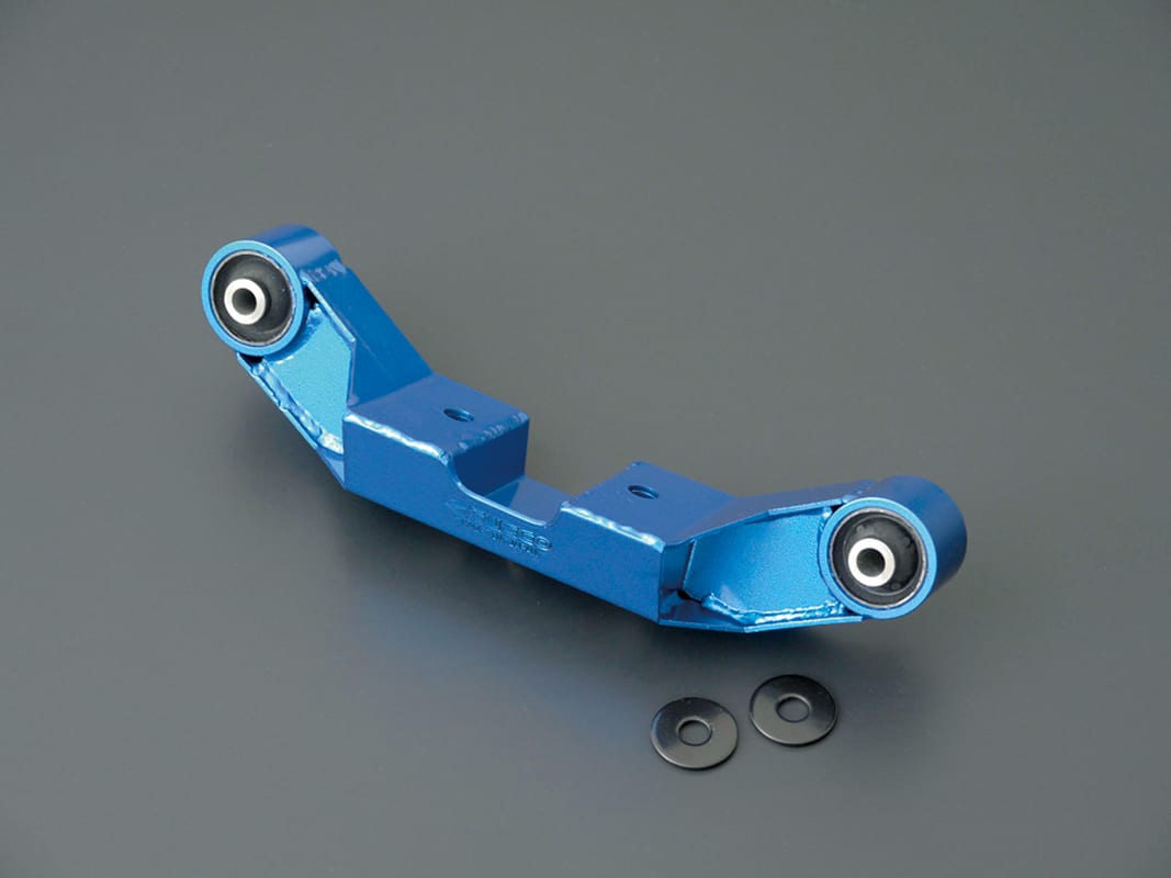ブルー塗装のスチールボックスを採用し、左右のブッシュには強化ゴムブッシュを圧入。