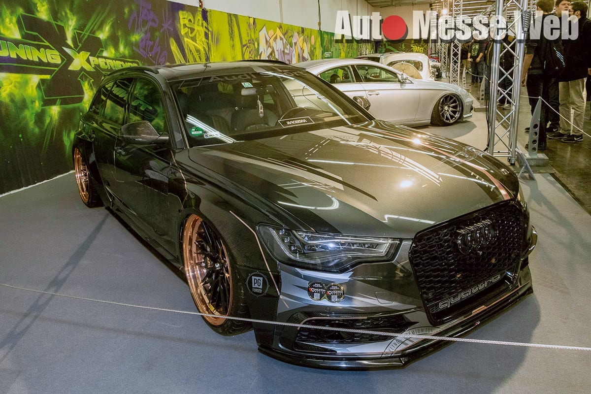「マクストンデザイン」の『カーボンワイドボディキット』を装着したA6。足元にはポーランドの鍛造ホイールブランド『PGフォージド』の鍛造21インチを投入。ブレーキとエキゾーストはRS6からシステムを流用している。