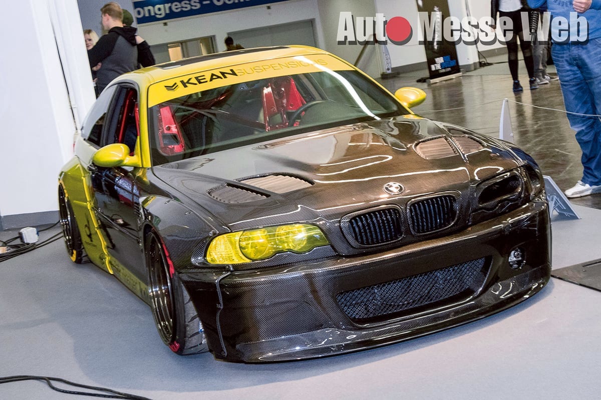 「キーンサスペンション」でフルスラムドしたBMW M3は、こちらも世界で人気の和製ボディキットメーカー『ロケットバニー』のワイドフェンダーやボンネット、前後バンパー、トランクなどをカーボン仕立てで。