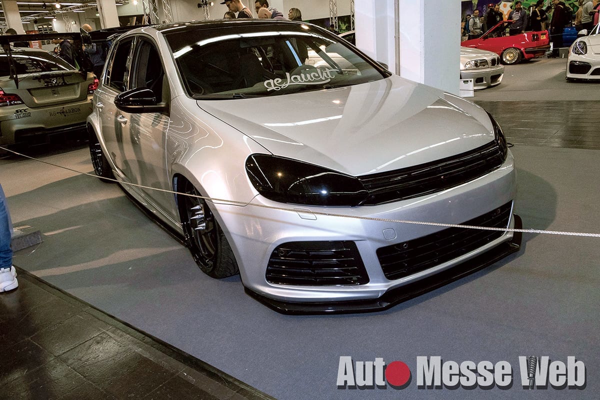大胆なGTウイングのステーに目を奪われるVWゴルフ6R。「エアリフト」装備の足元には、RAD48の『VR(9J×20:10.5J×20)』をドロップ。