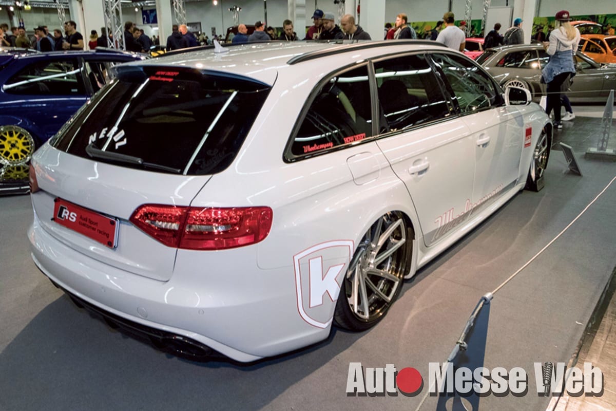 マッチョなA4はRS4のブリスターフェンダーを導入して、11.5J×19インチという超ワイドな「アスファルトドリームズ」の新作鍛造ホイールをドロップ。