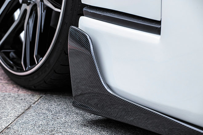サイドは前後に大きなカナードが与えられ、純正のフェンダーアーチとつながるようなデザインに。