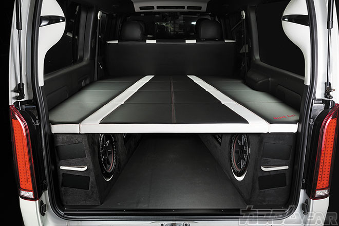 デモカーはメリハリの効いたカラーコーデのサンプルとして製作しているが、高級感を徹底追求した作り込みもOK。2018年は200系ワイドでファミリーユースを想定したスタイル&カラーコーデを発信予定だ。