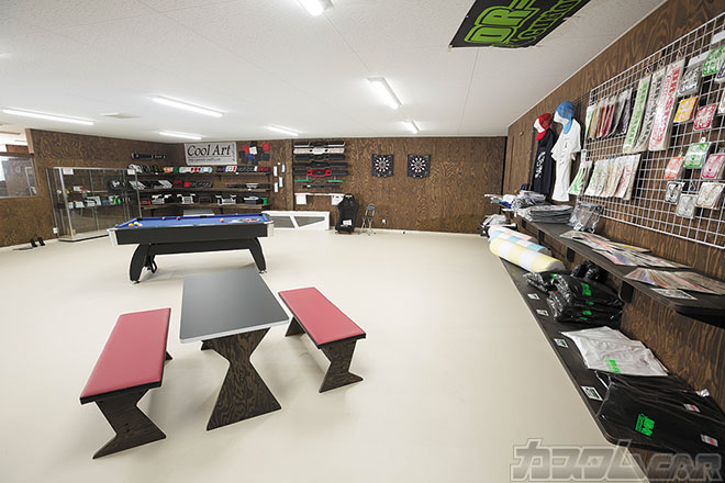 2017年春にオープンしたばかりとなるショールームも備えたビークラフトのファクトリー。クールアートの全アイテムが手にとってチェックできる環境、預かり作業が必要なオーダーもシャッター内ガレージへ保管できる体制を整えた。