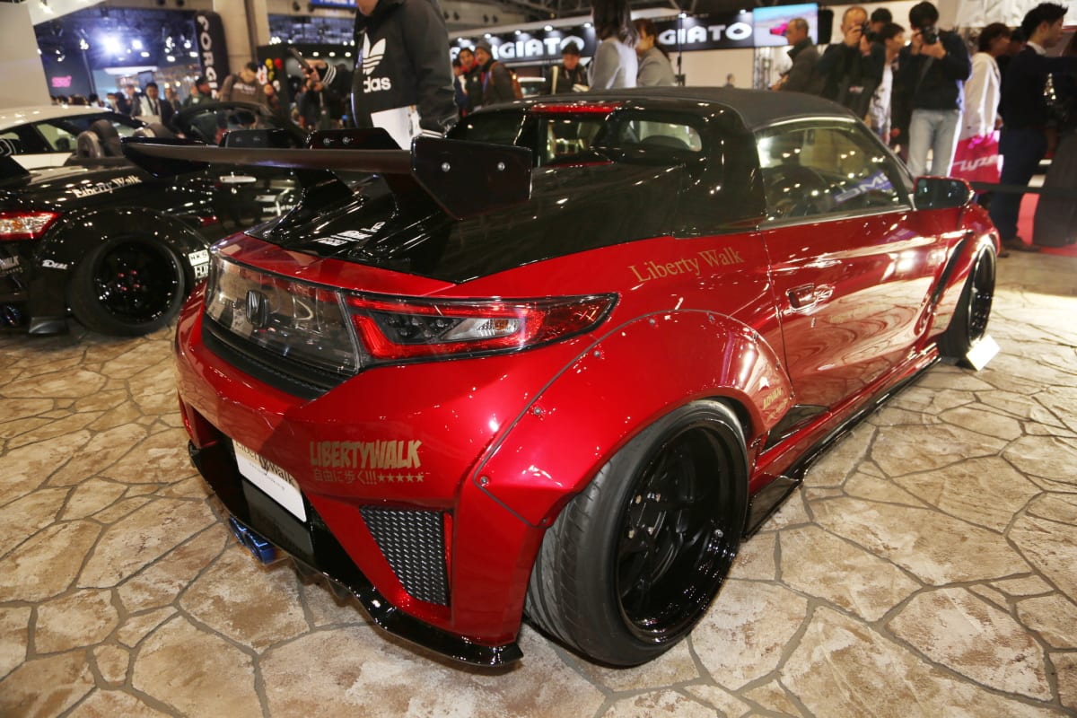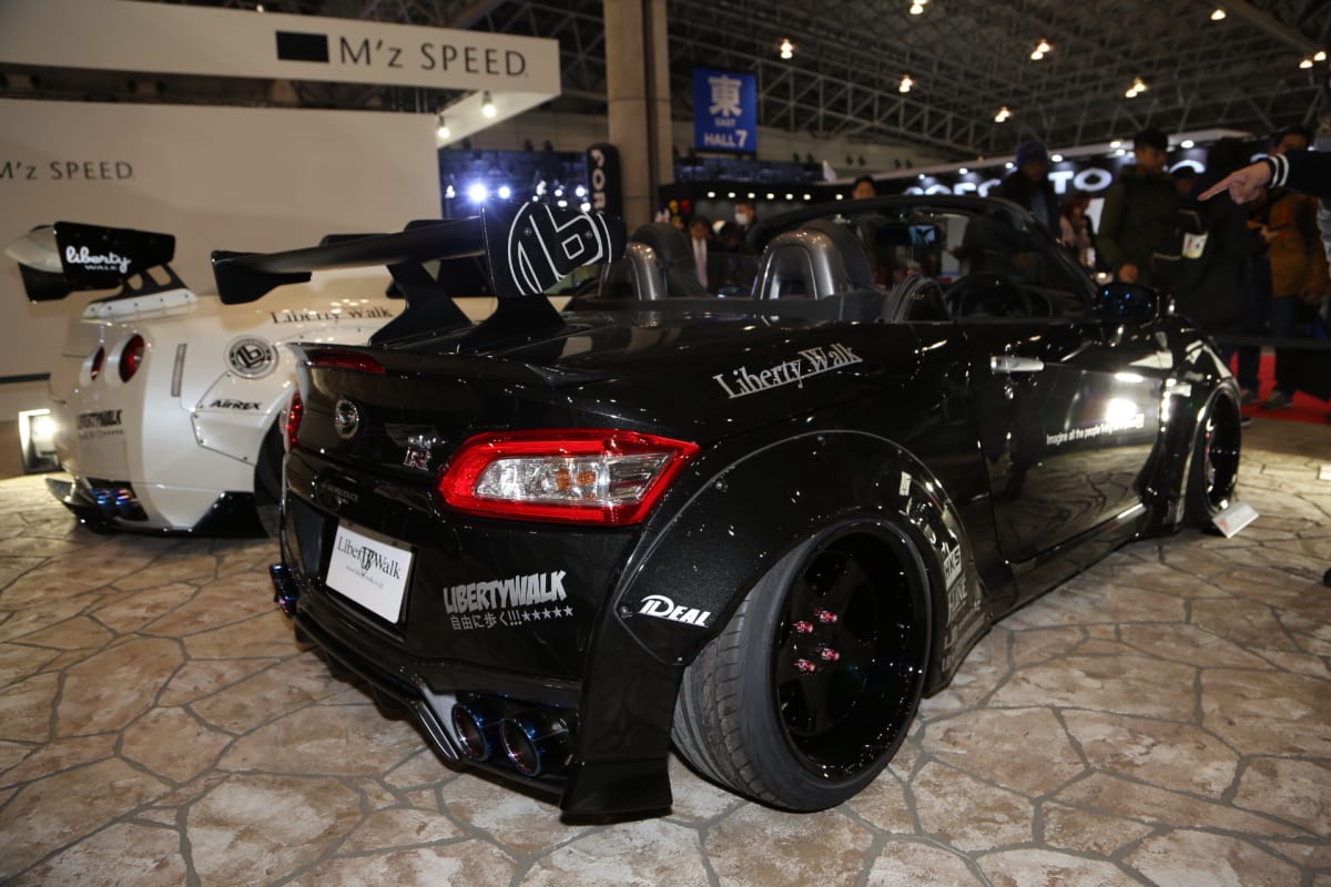 今回のショーにも、人気の軽自動車をカスタムしたクルマが大集結したが、中でも面白かったのが、オーバーフェンダースタイルで世界的にも名高い「リバティウォーク」のブースだ。