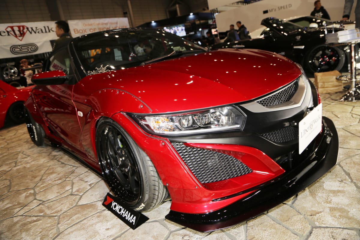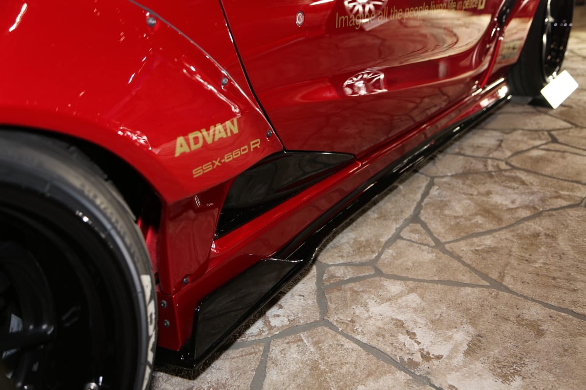 こちらのS660には、フロントバンパーやリヤバンパー、サイドステップにオーバーフェンダー、GTウイングなどをセットする。