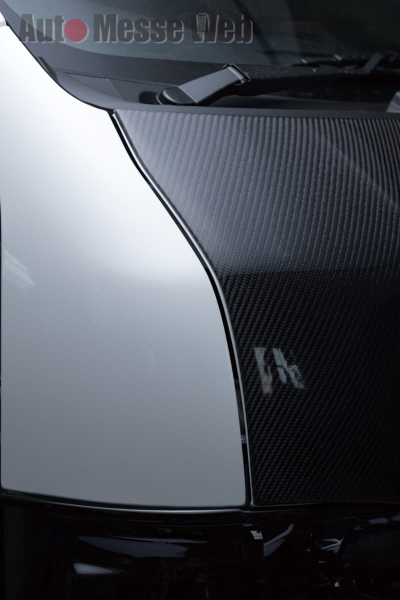 ボンネットという広大なキャンバスは、カーボン特有の色柄をアピールするのに絶好のパート。ヘッドライトやグリルにかかるロングノーズな顔との組み合わせも好相性だ。しかも、すでに発売済みのFRPタイプと同様、両端の純正フェンダーパネルとのバランスを意識して極薄に設計。後付け感もほぼナシと、スマートに楽しめる。