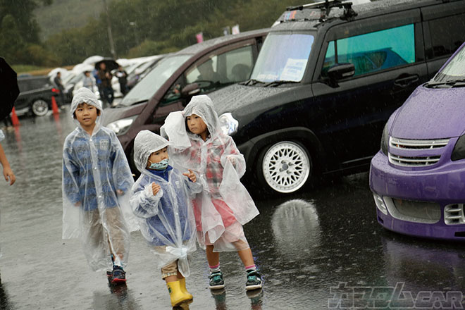 ミニバン・ワゴン・軽カーを中心に集まったエントリーカーは、台風直撃の豪雨にもかかわらず300台オーバー。