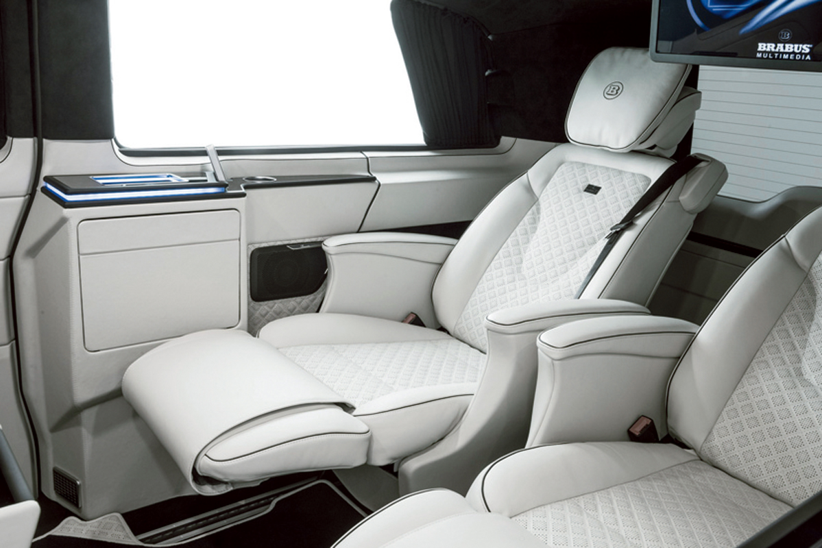 メルセデスベンツのVクラスをベースにしたビジネス・プラス。エグゼクティブが移動するのにもってこいの1台は、オプション次第でいかようにも作り込めるのが”ブラバス・ビジネス”だ。